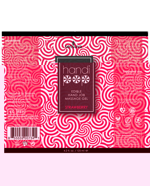Handipop Hand Job Massage Gel - 4.2 oz Bottle Strawberry