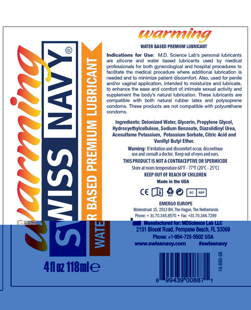 Swiss Navy Warming Water Based Lubricant - 4 oz