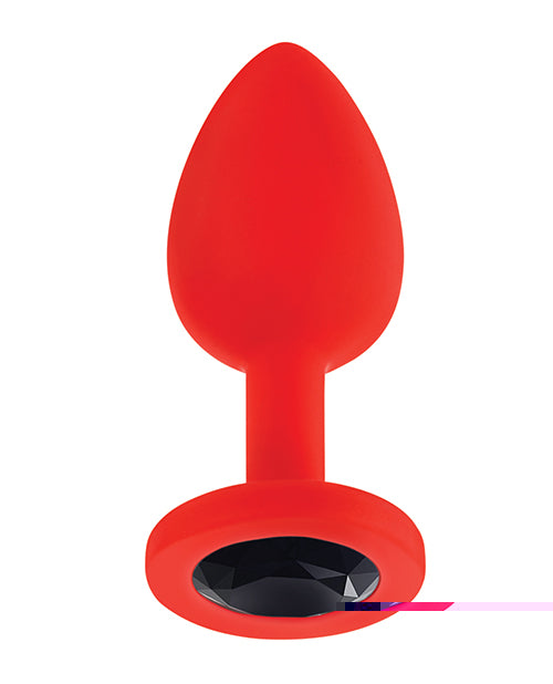 Luv Inc. Jeweled Silicone Butt Plug w/Three Stones - Small Red