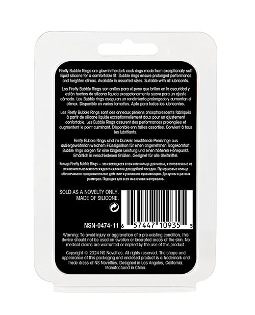 Firefly Glow in the Dark Bubble Cock Rings - White, Pack of 3