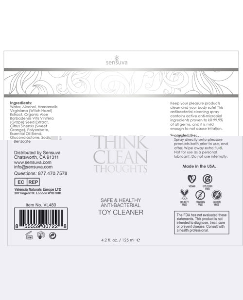 Sensuva Think Clean Thoughts Toy Cleaner - 4.2 oz
