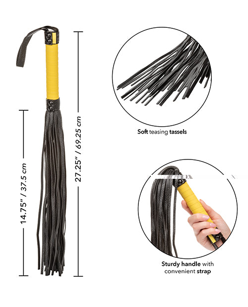 For the nights you're feeling extra naughty, indulge in the playful taps of the Boundless Flogger. Effortlessly plant stinging taps on your submissive with the teasing vegan leather tassels and sturdy textured handle. The chic tassels are made to elevate pleasure and intensify arousal with every teasing touch. Indulge in your wildest whims and embrace naughty fantasies with this chic BDSM hand whip. Dazzle in the bedroom and explore your kinky side as a couple with this versatile, pleasure loving flogger.