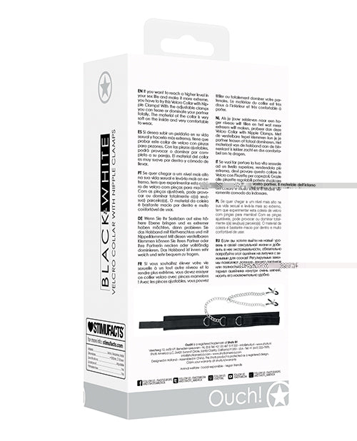 Shots Ouch Black & White Velcro Collar w/Nipple Clamps - Black